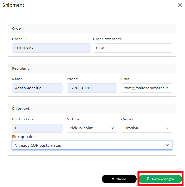 Vajuta nuppu +New Shipment ja täida vajalikud andmed.