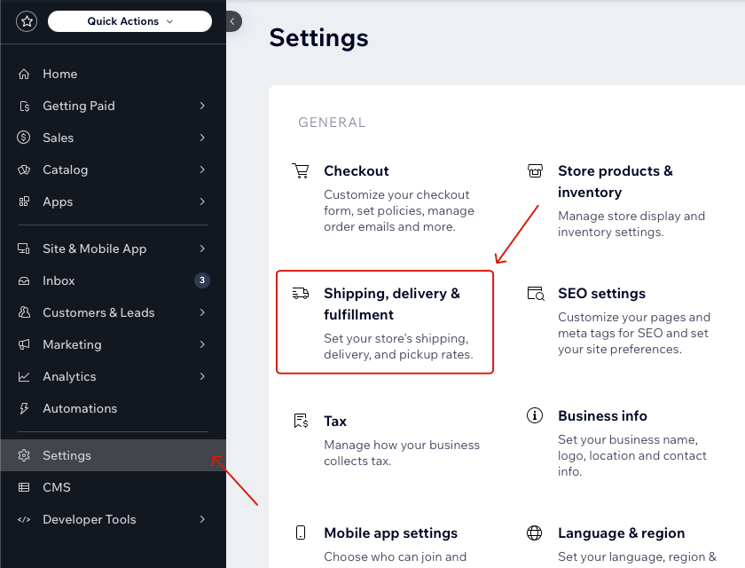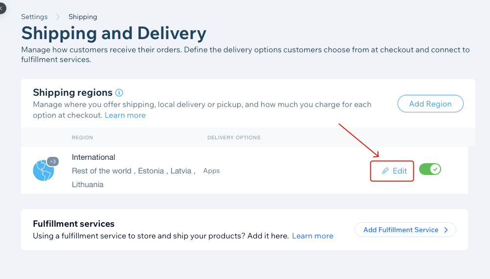 - Selleks mine Settings → Shipping, Delivery & Fulfillment: