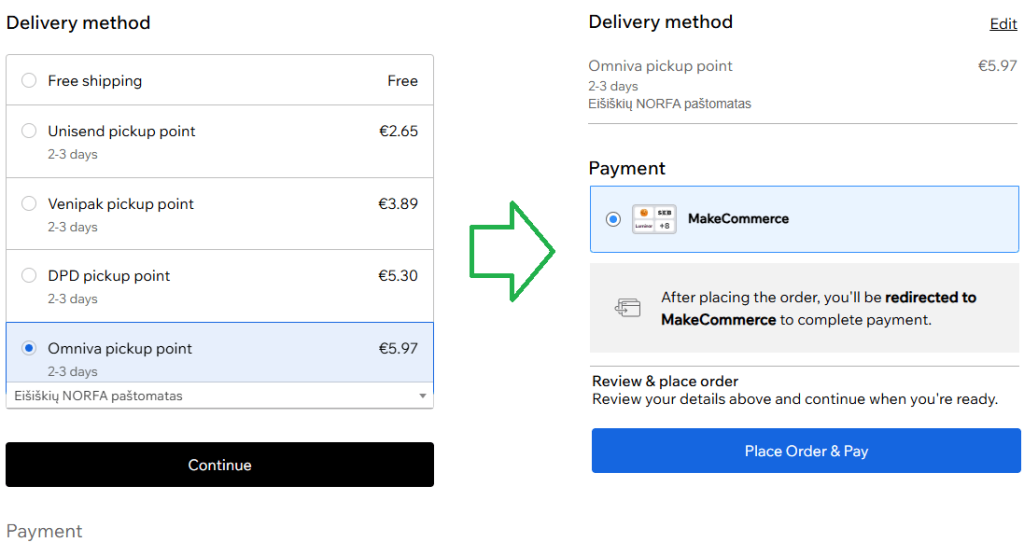 - Maksete ja tarne seadistamine on lõpule viidud! Nüüd on teie poes saadaval nii tarne- kui ka makseviisid: