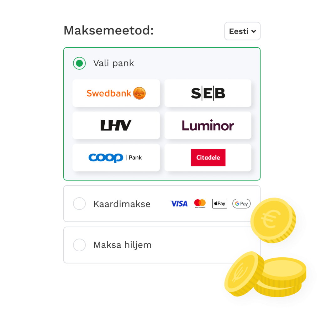 Usaldusväärsed makselahendused aitavad tagada, et Sinu kliendid tunnevad end e-poes turvaliselt ja ei kahtle oma oma ostuotsustes. Meilt saad Balti ja Soome pangamaksed, digipankade maksed ning rahvusvahelised kaardimaksed koos ülimugavate Apple Pay ja Google Pay´ga. Lisaks saad veebipoodi lisada populaarsed maksa-hiljem teenused või tavapoodi makseterminalid. Nii hoolitsed, et Sinu poes on sobiv makseviis igaühele. Juhuks, kui klient soovib tasuda korraga või ka osade kaupa.