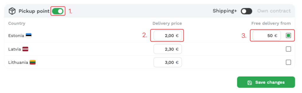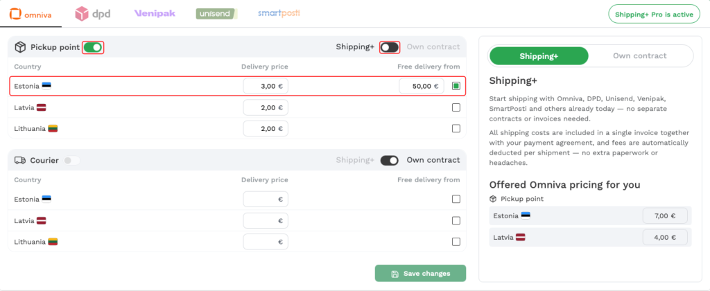- Lülituda konkreetse tarneviisi puhul Shipping+ ja oma lepingu vahel