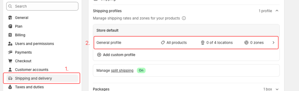 - Ava Shipping and deliveries jaotis. Seejärel vali soovitud tarneprofiil.
