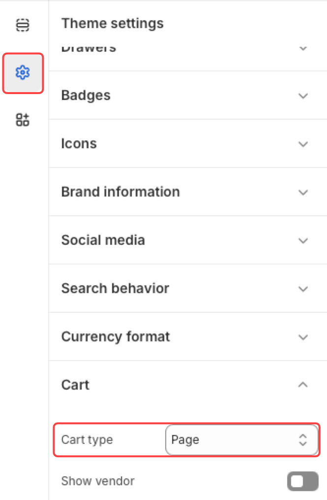 Lisaks veendu, et Shopify Theme ostukorvi tüübiks on määratud: Page: