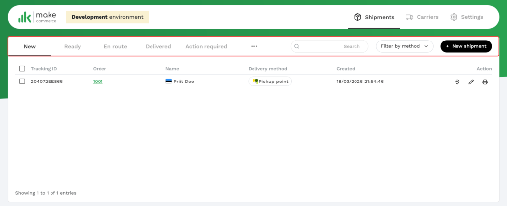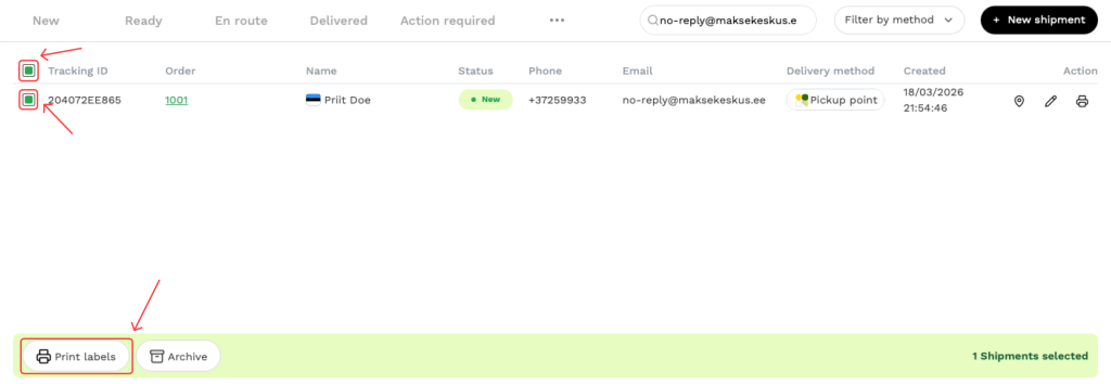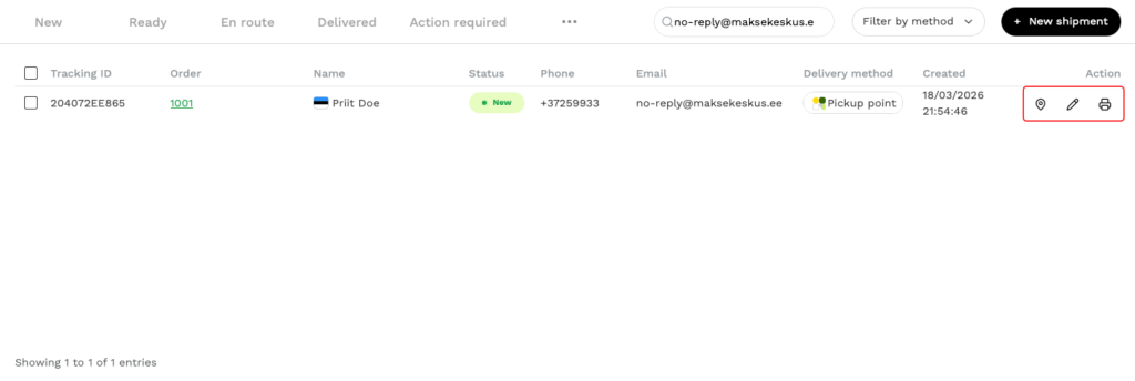 - MakeCommerce hoolitseb pärast tellimuse tasumist automaatse saadetise registreerimise, siltide loomise ja jälgimise eest